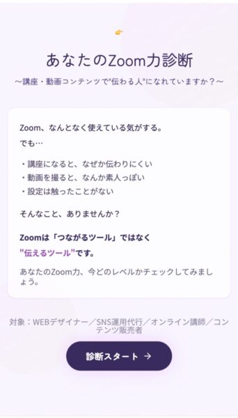 診断ページの作り方、活用方法についてのレッスンを開催します